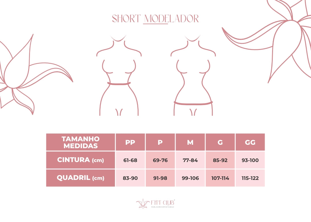 O Short Modelador tem compressão na medida certa para segurar a barriguinha sem marcar, com compressão media na barriga e também nas coxas ele impede o roça roça das coxas, deixando os culotes modelados.
